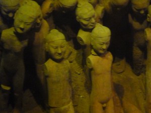 Sunday in Xian and a bike ride around the City walls – great fun. After this we went to the buddhist temple – Wild Goose Pagoda and on to the muslim quarter market – another wiz round and off to visit the figures the Han Yangling tomb on route to the airport. The tomb of Jing Di is quite different to the terracotta warriors – soft lighting and few other people, allow you to peer into the tomb of a Chinese emperor who died more than 2,000 years ago. The artefacts lie as they were found; many still partially encased in earth.